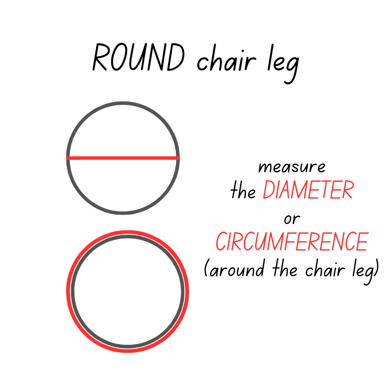 If you're unsure how to measure a chair leg properly, look at the pictures.